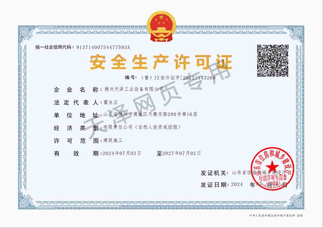 德州天澤工業設備有限公司成立于2003年(前身為德州天元集團天明工業設備安裝公司),經過20多年的發展,現成長為擁有職工600余人,各類專業技術人員近300余人,年生產能力兩億元以上,以建筑機電安裝工程、消防設施安裝工程施工為主,集建筑工程施工、市政工程施工、建筑智能化工程施工、園林綠化工程施工、工程管理服務、物業管理、電氣機械設備銷售等多元化經營于一體的綜合型企業。2005年,企業按照國際標準建立的質量管理體系,通過了ISO質量管理體系認證、環境管理體系認證、職業健康安全管理體系認證。施工工程遍布山東、河北、四川、江蘇等地,最具代表性的工程有:山東省德州市百腦匯資訊廣場機電安裝工程、德州經濟開發區天元大廈機電安裝工程、陵城區人民醫院機電安裝工程、德州金魯班大廈機電安裝工程、河北故城金辰小區機電安裝工程、北川地震災后援建工程等。多年來,公司始終堅持“以人為本,建精品工程,創行業品牌”的經營理念,先后榮獲。ㄊ校┘壧┥奖⑻旄、魯安杯等獎項,申報各種功法、多項專利。
